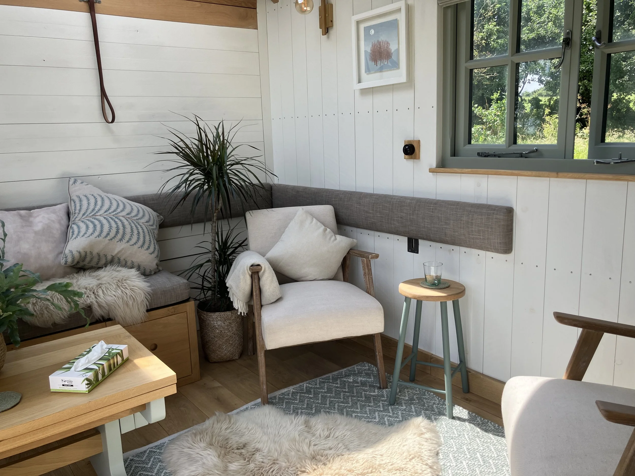 I work from a beautiful shepherds hut space which will be relocated to Devon when I reopen my practice and I look forward to sharing the peaceful space with new clients…